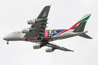 208. ^ Kamel, Deena (22 November 2023). "Emirates successfully tests world's first A380 flight powered by sustainable aviation fuel". The National. Retrieved 19 June 2024.