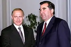 - ^ Russian: Эмомали́ Шари́пович Рахмо́нов, romanized: Emomalí Sharípovich Rahmónov[1]