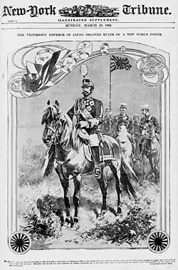 The Illustrated London News published an article with a cover illustration of Emperor Meiji in the New-York Tribune on 19 March 1905. The description text said: