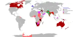 In the mid-twentieth century, the word "empire" obtained a negative connotation, viewed as inherently immoral or illegitimate.[49] Traditional or overt empire destroyed and discredited itself in the World Wars. The matters are worse in the German language where empire is "reich" and immediately associates with the Third Reich.[50] For the first time in history, countries which proudly called themselves empires disappeared from the map. The postwar world came under the domination of two superpowers both of which proclaimed themselves to be enemies of empire. The West contained the imperialist East and the East and the South resisted the imperialist West. Imperialism became a cosmopolitan, multi-front battle cry wielding many diverse and distant peoples in fighting a common enemy.[51] As former colonies came to make up the majority of states in the United Nations, "empire" lost all legitimacy in this major international forum. "Any state stupid enough to call itself an empire became subject automatically to UN resolutions on decolonisation."[52] Most postwar histories of empires have been hostile, especially if the authors were promoting nationalism.