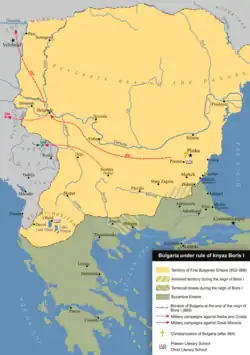 In Southeastern and Eastern Europe, during 917, the Eastern Roman Empire, sometimes called the Byzantine Empire, was forced to recognize the Imperial title of Bulgarian ruler Simeon the Great, who were then called Tsar, the first ruler to hold that precise imperial title. The Bulgarian Empire, established in the region in 680–681, remained a major power in Southeast Europe until its fall in the late 14th century. Bulgaria gradually reached its cultural and territorial apogee in the 9th century and early 10th century under Prince Boris I and Simeon I, when it became one of the largest states in Europe. This period is considered the Golden Age of medieval Bulgarian culture.[108][109][110]