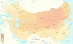 In the thirteenth century, Genghis Khan expanded the Mongol Empire to be the largest contiguous empire in the world history. It traversed nine modern time zones.[113] For the first time, all of the major regional powers of Eurasia were integrated into a single geopolitical space. Nikolay Kradin calls the phenomenon "medieval globalization."[114] However, within two generations, the empire was separated into four discrete khanates under Genghis Khan's grandsons. One of them, Kublai Khan, conquered China and established the Yuan dynasty with the imperial capital at Beijing. One family ruled the whole Eurasian land mass from the Pacific to the Adriatic and Baltic Seas. The emergence of the Pax Mongolica had significantly eased trade and commerce across Asia.[115][116]