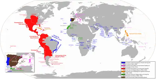 SpanishPortuguese Empire of the Iberian Union (1580–1640) was the first global imperial entity. The map includes all Spanish territories, but only territories Portugal had during the Iberian Union.