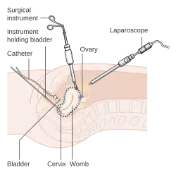- ^ a b Galaal K, Donkers H, Bryant A, Lopes AD (October 2018). "Laparoscopy versus laparotomy for the management of early stage endometrial cancer". The Cochrane Database of Systematic Reviews. 2018 (10) CD006655. doi:10.1002/14651858.CD006655.pub3. PMC 6517108. PMID 30379327.