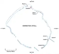 ![]() Map of the Marshall Islands highlighting the Enewetak Atoll in red | |