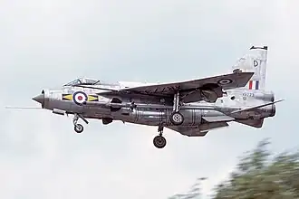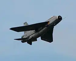 Saudi Arabia officially received F.53 Lightnings in December 1967, although they were kept at Warton while trials and development continued and the first Saudi Lightnings to leave Warton were four T.55s delivered in early 1968 to the Royal Air Force 226 Operational Conversion Unit at RAF Coltishall, the four T.55s were used to train Saudi aircrew for the next 18 months.[123] The new-build Lightnings were delivered under Operation "Magic Palm" between July 1968 and August 1969. Two Lightnings, a F.53 and a T.55 were destroyed in accidents prior to delivery, and were replaced by two additional aircraft, the last of which was delivered in June 1972.[120][124] The multirole F.53s served in the ground-attack and reconnaissance roles as well as an air defence fighter, with Lightnings of No 6 Squadron RSAF carrying out ground-attack missions using rockets and bombs during a border dispute with South Yemen between December 1969 and May 1970. One F.53 (53–697) was shot down by Yemeni ground fire on 3 May 1970 during a reconnaissance mission, with the pilot ejecting successfully and being rescued by Saudi forces.[124][125] Saudi Arabia received Northrop F-5E fighters from 1971, which resulted in the Lightnings relinquishing the ground-attack mission, concentrating on air defence, and to a lesser extent, reconnaissance.[126]