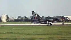 During the 1960s, as strategic awareness increased and a multitude of alternative fighter designs were developed by Warsaw Pact and NATO members, the Lightning's range and firepower shortcomings became increasingly apparent. The transfer of McDonnell Douglas F-4 Phantom IIs from Royal Navy service enabled these much longer-ranged aircraft to be added to the RAF's interceptor force alongside those withdrawn from Germany as they were replaced by SEPECAT Jaguars in the ground attack role.[115] The Lightning's direct replacement was the Panavia Tornado F3, an interceptor variant of the Panavia Tornado multi-role aircraft. The Tornado featured several advantages over the Lightning, including a far larger weapons load and considerably more advanced avionics.[116] Lightnings were slowly phased out of service between 1974 and 1988. In their final years the airframes required considerable maintenance to keep them airworthy due to the sheer number of accumulated flight hours. The last flight by RAF Lightnings was on 30 June 1988 with 2 aircraft flying to Cranfield Airport from RAF Binbrook.[3]