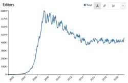- ^ A455bcd9 (8 February 2021). Wikipedia page views by language over time (PNG). Retrieved 25 June 2021.