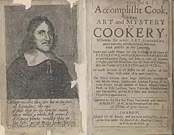 Robert May's The Accomplisht Cook was published in 1660 when he was 72 years old.[14] The book included a substantial number of recipes for soups and stews,[15] 38 recipes for sturgeon, and a large number of pies variously containing fish (including sturgeon), meat (including battalia pie), and sweet fillings.[16]