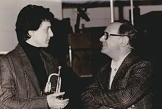 Before receiving his diplomas in trumpet, composition and instrumentation from the conservatory, Morricone was already active as a trumpet player, often performing in an orchestra that specialised in music written for films. After completing his education at Saint Cecilia, the composer honed his orchestration skills as an arranger for Italian radio and television. In order to support himself, he moved to RCA in the early sixties and entered the front ranks of the Italian recording industry.[134] Since 1964, Morricone was also a founding member of the Rome-based avant-garde ensemble Gruppo di Improvvisazione Nuova Consonanza. During the existence of the group (until 1978), Morricone performed several times with the group as trumpet player.[135]