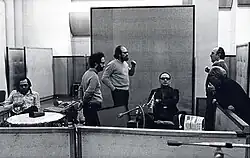 Morricone's career as an arranger began in 1950, by arranging the piece Mamma Bianca (Narciso Parigi).[27] On occasion of the "Anno Santo" (Holy Year), he arranged a long group of popular songs of devotion for radio broadcasting.[28] In 1956, Morricone started to support his family by playing in a jazz band and arranging pop songs for the Italian broadcasting service RAI. He was hired by RAI in 1958 but quit his job on his first day at work when he was told that broadcasting of music composed by employees was forbidden by a company rule. Subsequently, Morricone became a top studio arranger at RCA Victor, working with Renato Rascel, Rita Pavone, Domenico Modugno, and Mario Lanza.