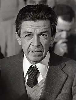 Already a prominent leader in the party, Berlinguer was elected to the position of national secretary in 1972, when Longo resigned on grounds of ill health. At the party's thirteenth congress that elected him, Berlinguer said that he would be neither Togliatti nor Longo.[44] In 1973, having been hospitalised after a car accident during a visit to the People's Republic of Bulgaria, later claimed to have been an attempted assassination orchestrated by Moscow,[45] Berlinguer wrote three famous articles ("Reflections on Italy", "After the Facts of Chile", and "After the Coup [in Chile]") for the party's intellectual weekly magazine Rinascita. In these, he presented the strategy of the Historic Compromise, a proposed coalition between the PCI and the DC to grant Italy a period of political stability, at a time of severe economic crisis,[46] and in a context in which, after Piano Solo and Golpe Borghese had been revealed, some forces were allegedly manoeuvering for a coup d'état in Italy.[37]