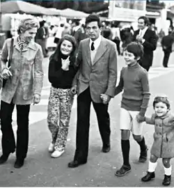 A non-believer,[36] Berlinguer married in a civil ceremony the religious Letizia Laurenti (1928–2017), whom he met during a holiday in the Aosta Valley, on 26 September 1957 in the Capitoline Hill; they had been engaged for ten years, and both the PCI and her family were against it.[76] While seemingly cold in public and in front of their children, their relationship has been described as "a love from Romeo and Juliet".[76] Together, they had four children: former TG3 journalist Bianca Maria (born 1959), RAI journalist Maria Stella (born 1961), Communist Refoundation Party politician Marco (born 1963), and Mediaset journalist Laura (born 1970).[77][78] He often used to give his children tutoring lessons, including after a political meeting was concluded, on topics like Georg Wilhelm Friedrich Hegel and pre-Socratic philosophers but never in a forceful way; he did not expect them to follow his path in politics.[76] Berlinguer said that they "must be able to make their choices freely, without any prejudice".[36]