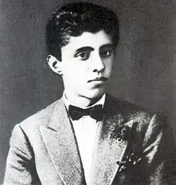 Hoxha was born in Gjirokastër in southern Albania (then a part of the Ottoman Empire) in October 1908,[3] the son of Halil Hoxha, a Muslim cloth merchant who travelled widely across Europe and the United States, and Gjylihan Hoxha (née Çuçi). Enver was named after Enver Pasha, a leading figure of the Young Turk Revolution.[3] The Hoxha family was attached to the Bektashi Order.[4]