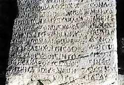 Epicurus rejected immortality. Epicureans believe in the soul, but Epicureanism suggests that the soul is mortal and material, just like the body.[42] Epicurus rejected any possibility of an afterlife, while still contending that one need not fear death: "Death is nothing to us; for that which is dissolved, is without sensation, and that which lacks sensation is nothing to us."[43] From this doctrine arose the Epicurean Epitaph: Non fui, fui, non sum, non curo ("I was not; I have been; I am not; I do not mind."), which is inscribed on the gravestones of his followers and seen on many ancient gravestones of the Roman Empire.[44]