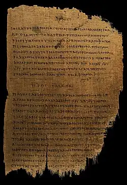 The original of the letter (autograph) is not known to survive. Papyrus 46, the earliest reasonably complete version available to scholars today, dates to approximately AD 200, around 150 years after the original was drafted.[8] This papyrus is fragmented in a few areas, causing some of the original text to be missing. The text of surviving manuscripts varies. Biblical scholar Bruce Metzger writes: "through careful research relating to paper construction, handwriting development, and the established principles of textual criticism, scholars can be rather certain about where these errors and changes appeared and what the original text probably said."[9]