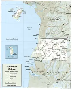 - ^ Law, Gwillim (22 April 2016). "Districts of Equatorial Guinea". Statoids. Archived from the original on 10 October 2017. Retrieved 25 September 2017.