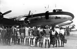 Between 1926 and 1959, Bioko and Río Muni were united as the colony of Spanish Guinea. The economy was based on large cacao and coffee plantations and logging concessions and the workforce was mostly immigrant contract labour from Liberia, Nigeria, and Cameroun.[40] Between 1914 and 1930, an estimated 10,000 Liberians went to Fernando Po under a labour treaty that was stopped altogether in 1930.[41] With Liberian workers no longer available, planters of Fernando Po turned to Río Muni. Campaigns were mounted to subdue the Fang people in the 1920s, at the time that Liberia was beginning to cut back on recruitment. There were garrisons of the colonial guard throughout the enclave by 1926, and the whole colony was considered 'pacified' by 1929.[42]