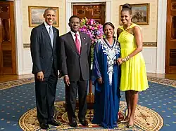 In 2006, Obiang signed an anti-torture decree banning all forms of abuse and improper treatment in Equatorial Guinea, and commissioned the renovation and modernization of Black Beach prison in 2007 to ensure the humane treatment of prisoners.[83] However, human rights abuses have continued. Human Rights Watch and Amnesty International among other non-governmental organizations have documented severe human rights abuses in prisons, including torture, beatings, unexplained deaths and illegal detention.[84][85] Obiang was re-elected to serve an additional term in 2009 in an election the African Union deemed "in line with electoral law".[86] Obiang re-appointed Prime Minister Ignacio Milam Tang in 2010.[87]