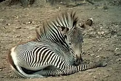 - ^ a b Becker CD, Ginsberg JR (1990). "Mother-infant Behaviour of Wild Grevy's Zebra". Animal Behaviour. 40 (6): 1111–1118. doi:10.1016/S0003-3472(05)80177-0. S2CID 54252836.