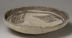Excavation there resumed from 1946 to 1949 under Fuad Safar and Seton Lloyd of the Iraqi Directorate General of Antiquities and Heritage. Among the finds were a Ubaid period terracotta boat model, complete with a socket amidship for a mast and hole for stays and rudder, bevel-rimmed bowls, and a "lizard type" figurine like those found in a sounding under the Royal Cemetery of Ur. Soundings in the cemetery showed it to have about 1000 graves, all from the end of the Ubaid period (Temple levels VI and VII).[19][20][21][22][23] They found a sequence of 17 Ubaid Period superseding temples and an Ubaid Period graveyard with 1000 graves of mud-brick boxes oriented to the southeast. The temple began as a 2 m × 3 m (6 ft 7 in × 9 ft 10 in) mud brick square with a niche. At Level XI it was rebuilt and eventually reached its final tripartite form in Level VI. In Ur III times a 300 square meter platform was constructed as a base for a ziggurat.[24] These archaeological investigations showed that, according to A. Leo Oppenheim, "eventually the entire south lapsed into stagnation, abandoning the political initiative to the rulers of the northern cities", probably as a result of increasing salinity produced by continuous irrigation, and the city was abandoned in 600 BC.[25] In 1990 the site was visited by A. M. T. Moore who found two areas of surface pottery kilns not noted by the earlier excavators.[26]