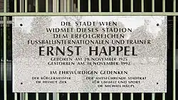 A heavy smoker for most of his adult life, Happel died of lung cancer in 1992 at age 66. In the wake of his death, the biggest football stadium in Austria, the Praterstadion in Vienna, was renamed the Ernst-Happel-Stadion. Four days after his death, Austria played against Germany and reached a 0–0 draw; Happel's cap lay on the bench during the entire match.