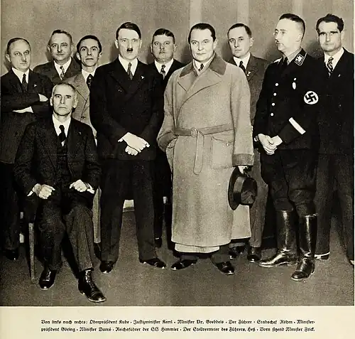 Seated from left Minister of Finance Ludwig Siebert, Prime Minister/Reich Governor of Bavaria Franz von Epp, Minister of the Interior Adolf Wagner, and Minister of Culture Hans Schemm.