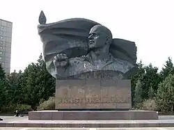 In the 1950s, a two-part East German film, Ernst Thälmann, was produced.[26] In 1972, Cuba named a small island, Cayo Ernesto Thaelmann, after him, and was seen as Cuba's gift to East Germany, which was not mentioned in the documents that incorporated East Germany into reunified Germany, leading to the urban legend that the German Democratic Republic still exists on the island.[28] One of the main traffic arteries of Soviet Riga was named Ernsta Tēlmaņa iela after him on completion in 1981; however, soon after Latvia had regained independence in 1991 it was renamed Kārļa Ulmaņa gatve, after pre-World War II prime minister Kārlis Ulmanis. In Ho Chi Minh City, a highschool, THPT Ernst Thalmann (Ten-lơ-man) was named after him.[29] The VEB Ernst Thälmann Waffenfabrik, an East German weapons factory in Suhl (formerly Simson), was named after Thälmann (until 1990). In Ulaanbaatar, a primary school's namesake was given after Ernst Thälmann, which is still in operation. The British Communist composer and activist Cornelius Cardew named his Thälmann Variations for piano in Thälmann's memory.[30]