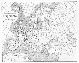 Map of Esperanto groups in Europe in 1905