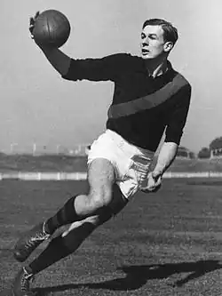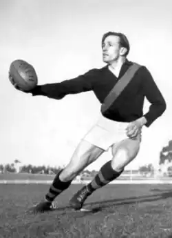 The 1949 season heralded the arrival on the VFL scene of John Coleman, arguably the greatest player in Essendon's history, and, in the view of some, the finest player the game has known.[44] In his first ever appearance for the Dons, against Hawthorn in Round 1, 1949, he booted 12 of his side's 18 goals to create a round one record which was to endure for forty-five years. More importantly, however, he went on to maintain the same high level of performance throughout the season, kicking precisely 100 goals for the year to become the first player to kick 100 goals in a season since Richmond's Jack Titus in 1940.