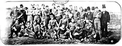 The club played its first recorded match against the Carlton Second Twenty (the reserves) on 7 June 1873,[10] with Essendon winning by one goal. Essendon played 13 matches in its first season, winning seven, with four draws and losing two.[11] The club was one of the inaugural junior members of the Victorian Football Association (VFA) in 1877,[12] and it began competing as a senior club from the 1878 season.[13] During its early years in the Association, Essendon played its home matches at Flemington Hill, but it moved to the East Melbourne Cricket Ground in 1881.