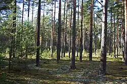 Estonia had two regional cultures in this period. Northern and western coastal areas maintained close connections with Scandinavia, while the inland had stronger ties to the Balts and the principality of Pskov.[44] Ancient Estonia had a professional warrior caste,[45] while international trade provided nobles with wealth and prestige.[46] This era's Estonian burial sites often contain both individual and collective graves, with artefacts like weapons and jewelry reflecting the shared material culture of Scandinavia and Northern Europe.[47][48] Very little is known about the religious beliefs of medieval Estonians prior to Christianisation. A 1229 chronicle mentions Tharapita as the supreme deity of the islanders of Saaremaa (Ösel). Sacred groves, particularly of oak trees, factored prominently into pagan worship practices.[49][50]