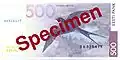 500 krooni | €31.96 | Purple | Carl Robert Jakobson | Barn swallow | 1991, 1994, 1996, 2000, 2007 | |||||