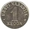 The kroon became the currency of Estonia on 1 September 1928 after having been a unit of account since 1924.[4] It replaced the mark at a rate of 100 marks = 1 kroon. The kroon was subdivided into 100 senti.
