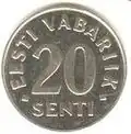 On 25 July 1940, 4 days after the founding of the Estonian SSR, the last Estonian pre-WW II coin, the new 1 sent (date 1939), was issued.
