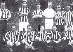 Estudiantes' first achievement was the 1911 Primera B title which allowed the team to play at the top tier of Argentine football, Primera División. Just two years later Estudiantes won its first title in Primera, playing at the dissident Federación Argentina de Football (FAF).[2] That season the team disputed 18 matches, winning 14 with only 1 lost and scoring 64 goals (with an average of 3,55 goals per match).