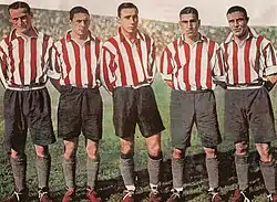 When professionalism was adopted in Argentine football in 1931, Estudiantes had a famous offensive lineup: Miguel Ángel Lauri, Alejandro Scopelli, Alberto Zozaya, Manuel Ferreira and Enrique Guaita, known as Los Profesores ("The Professors"), and still regarded as one of Argentina's all-time finest.[5] Alberto Zozaya scored the first goal of professional football in Argentina and was the top goalscorer of the first professional tournament. Ferreira played for the national team in the 1928 Olympic Games and the 1930 World Cup; Guaita and Scopelli played for Italian national team that won the 1934 FIFA World Cup. Saúl Calandra, the Sbarra brothers (Raúl and Roberto) and Armando Nery were feared defensive players.