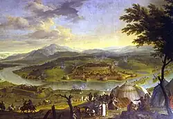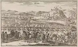 The first interpretation of the name was suggested by Antonio Bonfini. He tried to explain it from Istrogranum, "city at the confluence of Ister (the Greek name of the Danube river) and Gran (the Latin name of the river Hron)". This interpretation is still popular.[5][6][7] Viktor Récsey attempted to derive the name from Germanic languages. After the conquest of the country by Charlemagne, the Franks should give the name Osterringun to their easternmost castle; as a comparison, a reference is made to the town of Östringen. Pavel Jozef Šafárik tried to explain the name from Slavic ostřehu (locus custodius, munitus).[8] Gyula Pauler suggested a Slavic personal name Stigran without a deeper analysis of its origin.[9]
