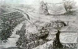 Esztergom (as Estergon) became the centre of an Ottoman sanjak controlling several counties, and also a significant castle on the northwest border of the Ottoman Empire – the main clashing point to prevent attacks on the mining towns of the highlands, Vienna and Buda. In 1594, during the unsuccessful but devastating siege by the walls of the Víziváros, Bálint Balassa, the first Hungarian poet who gained European significance, died in action. The most devastating siege took place in 1595 when the castle was reclaimed by the troops of Count Karl von Mansfeld and Count Mátyás Cseszneky. The price that had to be paid, however, was high. Most of the buildings in the castle and the town that had been built in the Middle Ages were destroyed during this period, and there were only uninhabitable, smothered ruins to welcome the conquerors.