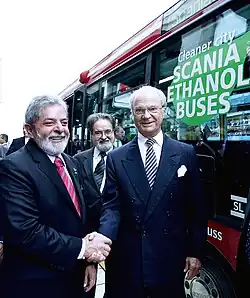 Under the auspices of the BioEthanol for Sustainable Transport (BEST) project, the first ethanol-powered (ED95) bus began operations in São Paulo city in December 2007 as a one-year trial project.[60][61][62] A second ED95 trial bus began operating in São Paulo city in November 2009.[63] Based on the satisfactory results obtained during the 3-year trial operation of the two buses, in November 2010 the municipal government of São Paulo city signed an agreement with UNICA, Cosan, Scania and Viação Metropolitana", the local bus operator, to introduced a fleet of 50 ethanol-powered ED95 buses by May 2011. The local government objective is for the city's entire bus fleet, which is made of 15,000 diesel-powered buses, to use only renewable fuels by 2018.[64][65] The first ethanol-powered buses were delivered in May 2011, and the 50 ethanol-powered ED95 buses are scheduled to begin regular service in São Paulo in June 2011.[66][67]
