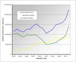 | Brazilian ethanol production(a)(b) 2004–2020[1][80][81][82][83][84] (Millions of U.S. gallons) | ||||||||||||||||