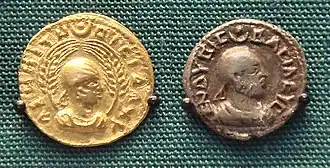Around 316 AD, Frumentius and his brother Edesius from Tyre accompanied their uncle on a voyage to Ethiopia. When the vessel stopped at a Red Sea port, the natives killed all the travellers except the two brothers, who were taken to the court as slaves. They were given positions of trust by the monarch, and they converted members of the royal court to Christianity. Frumentius became the first bishop of Aksum.[72] A coin dated to 324 shows that Ethiopia was the second country to officially adopt Christianity (after Armenia did so in 301), although the religion may have been at first confined to court circles; it was the first major power to do so. The Aksumites were accustomed to the Greco-Roman sphere of influence, but they embarked on significant cultural ties and trade connections between the Indian subcontinent and the Roman Empire via the Silk Road, primarily exporting ivory, tortoise shell, gold and emeralds, and importing silk and spices.[71][73] The country's gold production in 2015 is 9 metric tons.[74]