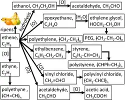 Ethylene is also an important natural plant hormone and is used in agriculture to induce ripening of fruits.[11] The hydrate of ethylene is ethanol.