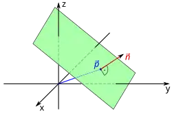 In Euclidean geometry, a plane is a flat two-dimensional surface that extends indefinitely. Euclidean planes often arise as subspaces of three-dimensional space . A prototypical example is one of a room's walls, infinitely extended and assumed infinitesimally thin. While a pair of real numbers suffices to describe points on a plane, the relationship with out-of-plane points requires special consideration for their embedding in the ambient space .