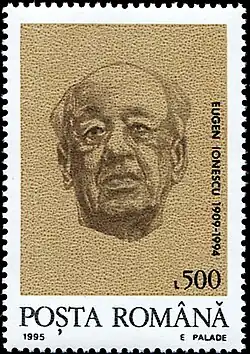 Eugène Ionesco (/jəˈnɛskoʊ/;[1] French: [øʒɛn jɔnɛsko]; born Eugen Ionescu, Romanian: [e.uˈdʒen joˈnesku] ⓘ; 26 November 1909 – 28 March 1994) was a Romanian-French playwright who wrote mostly in French, and was one of the foremost figures of the French avant-garde theatre in the 20th century. Ionesco instigated a revolution in ideas and techniques of drama, beginning with his "anti play", The Bald Soprano which contributed to the beginnings of what is known as the Theatre of the Absurd, which includes a number of plays that, following the ideas of the philosopher Albert Camus, explore concepts of absurdism and surrealism.[2][3] He was made a member of the Académie française in 1970, and was awarded the 1970 Austrian State Prize for European Literature, and the 1973 Jerusalem Prize.