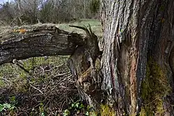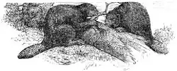 In Greece, the Eurasian beaver was present in the Last Glacial Period; remains have been found in Epirus.[53] Beaver remains from the Neolithic have been found in coastal Evros and Argura; from the Neolithic to Bronze Age transition period in the Ptolemaida basin and in Sitagroi; and beaver remains from the Early Helladic II have been found in northeastern Peloponnese.[54][55][56][57] In the 4th century BC, Aristotle described this species under the name λάταξ/ (latax). He wrote that it is wider than the otter, with strong teeth, and at night it often uses these teeth to cut down trees on riverbanks.[58] Ιt's not clear when beavers vanished from Kastoria (which may have been named after the beaver – κάστορας in Greek), but as late as the 18th century they were still hunted for fur.[59] Buffon wrote that they were very rare in Greece at that time.[60] In the 19th century, beavers could still be found in the Alfeios river and in Mesolongi.[61]