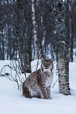 In Sweden, the lynx population was estimated at 1,400 individuals in 2006 and 1,250 in 2011. Hunting is controlled by government agencies.[16] In Finland, about 2,200–2,300 individuals were present according to a 2009 estimate.[17] The lynx population in Finland has been increasing every year since 1991, and is estimated to be nowadays larger than ever before. Limited hunting is permitted. In 2009 the Finnish Ministry of Agriculture and Forestry gave a permit for hunting of 340 lynx individuals.[18]