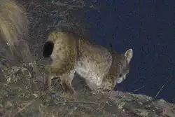 In two ecosystems of Anatolia, cannibalism was common, and fellow lynx were found to form 5% to 8% of prey biomass in their diets. Claws and bones analysed showed that sub-adult lynx were the victims of cannibalism during the mating and spring seasons.[64] Lynx were not found in the sympatrically occurring wolves' diets.[65] On the contrary, lynx themselves were the predators of red fox, pine marten, domestic and feral cats and dogs, and golden jackal remains have also been found in lynx fecal samples, possibly the result of carrion consumption.[64] Occasionally, in areas such as Manchuria and the Amur River, it may be possible the Amur leopard targets lynx; in the same geographic region, Siberian tigers have also preyed on lynxes, as evidenced by examination of tiger stomach contents.[6][87] In Sweden, out of 33 deaths of lynx of a population being observed, one was probably killed by a wolverine.[88][89] Lynx compete for food with the predators described above, and also with the red fox, eagle owls, golden eagles, wild boar (which scavenge from lynx kills), and in the southern part of its range, the snow leopard and leopard as well.[6] Brown bears, although not (so far as is known) a predator of Eurasian lynx, are in some areas a semi-habitual usurpers of ungulate kills by lynxes, not infrequently before the cat has had a chance to consume its kill itself.[90][75]
