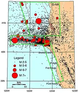 - ^ a b Mendocino Triple Junction Offshore Northern California, A Policy for Rapid Mobilization of USGS OBS (RMOBS), Woods Hole Science Center, USGS. Retrieved April 30, 2013