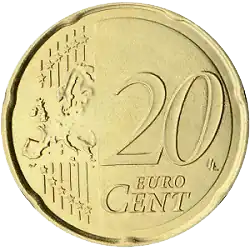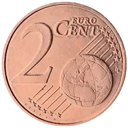 All coins have a common reverse side showing how much the coin is worth, with a design by Belgian designer Luc Luycx.[8] The design of the 1c, 2c and 5c coins shows Europe's place in the world as a whole,[8] The 10c coins and above show either the 15 countries that were the European Union in 2002, or, if minted after 2007, the whole European continent,[8] along with Luc Luycx's signature, which is visible as two L letters connected together (LL). Coins from Austria, Italy, Portugal, San Marino and the Vatican City show the new design if minted 2008 or later.[8] The coins symbolise the unity of the EU.[10]